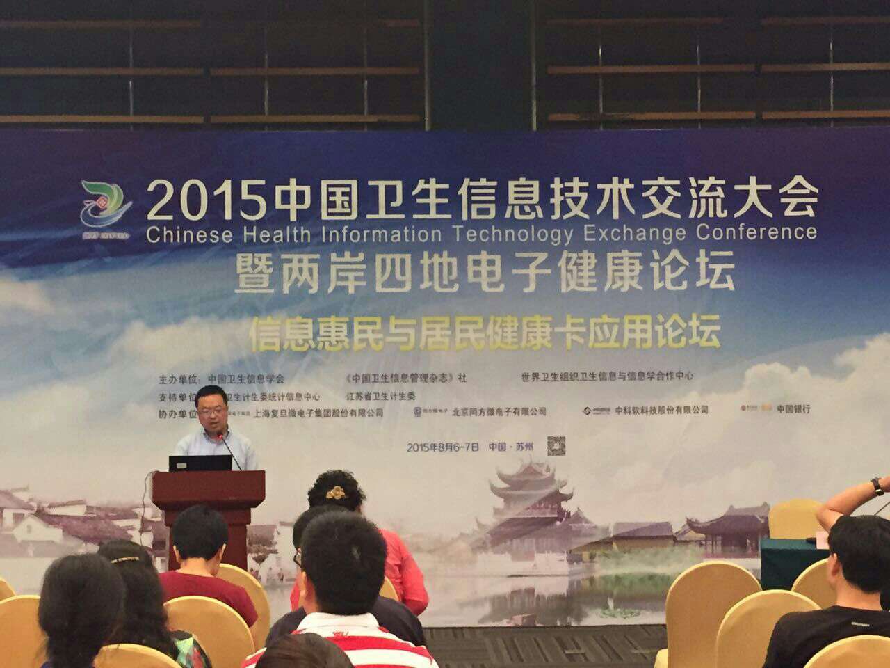 8月6日至7日,“2015中國衛生信息技術交流大會”在蘇州市盛大舉行。作為支持主辦單位“國家衛生計生委統計信息中心”的忠實伙伴之一,復旦微電子集團以特裝身姿亮相大會現場,并在“信息惠民與居民健康卡應用”大會論壇中作了題為“從行業大卡現狀看居民健康卡發展”的精彩演講。