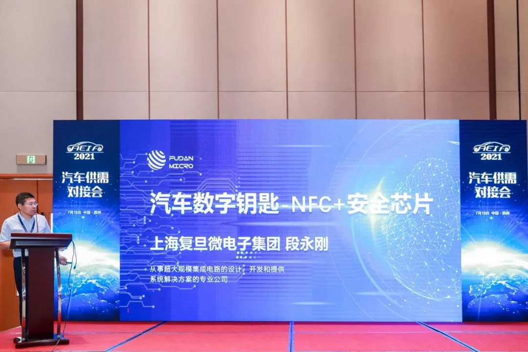 在ICDIA同期舉辦的“首屆汽車芯片供需對接會”上,復(fù)旦微電子集團(tuán)北京分公司總經(jīng)理段永剛,為在座30多家汽車與零部件企業(yè),介紹了公司“汽車數(shù)字鑰匙-NFC+安全芯片”的解決方案。憑借公司在汽車NFC芯片、安全芯片領(lǐng)域的技術(shù)積累和獨(dú)創(chuàng)優(yōu)勢,復(fù)旦微電子榮獲 “2021年度創(chuàng)新企業(yè)”。該獎(jiǎng)項(xiàng)由整車和零部件專家評選,共評出十家本土汽車芯片創(chuàng)新企業(yè),代表了行業(yè)對于復(fù)旦微電子在汽車電子領(lǐng)域的高度認(rèn)可。